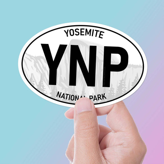 Yosemite National Park Bumper Sticker- California Oval Decal: Half of Each Size / Half Dome Background