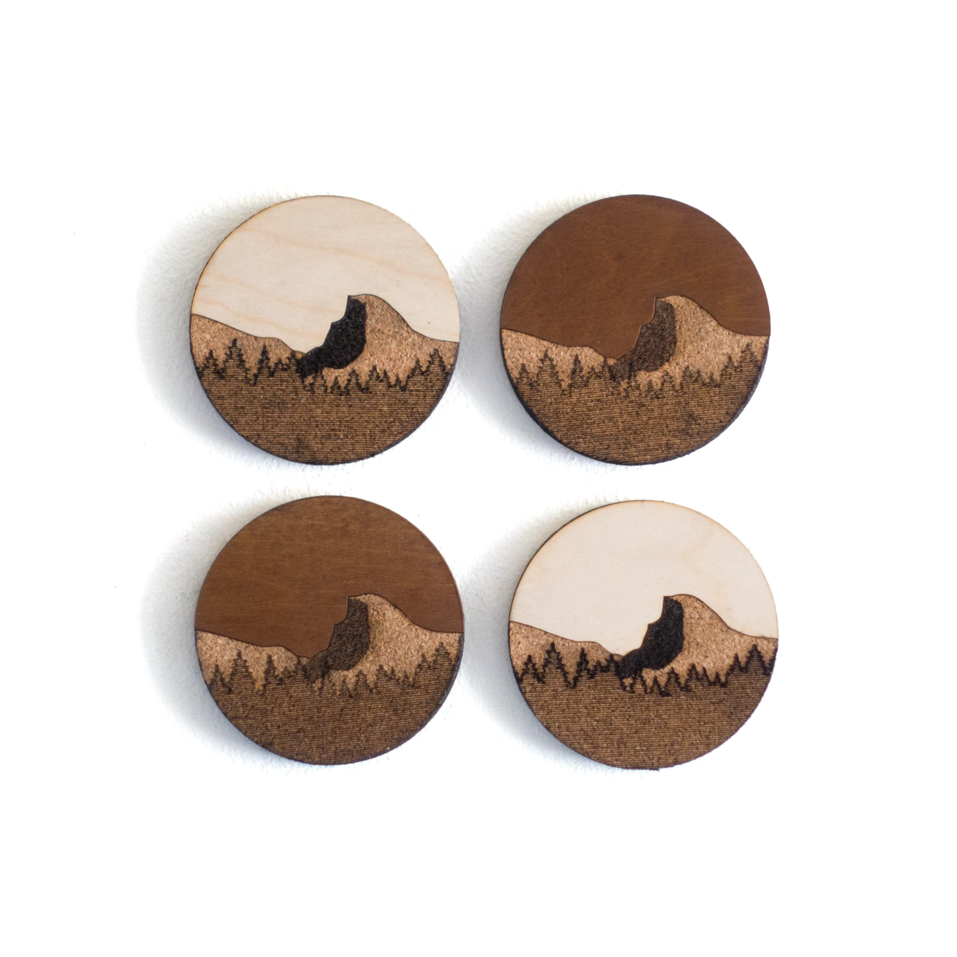 Yosemite National Park Coasters. Available in Light and Dark woods, sold by the each.